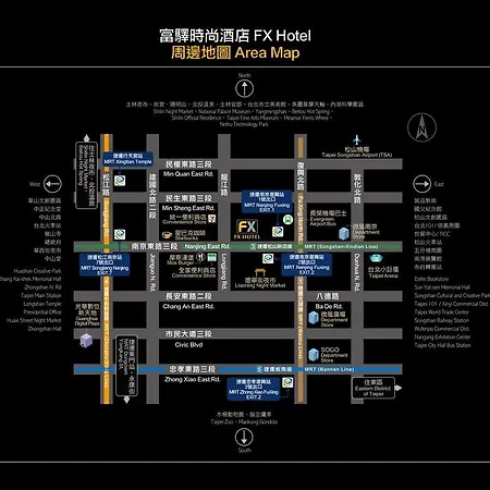 Fx Hotel Taipei Nanjing East Road Branch is close to the public transport, as it is set approximately 5 minutes' walk from Nanjing East Road underground station and within a short walking distance of Nanjing & Lonjiang Intersection bus stop.