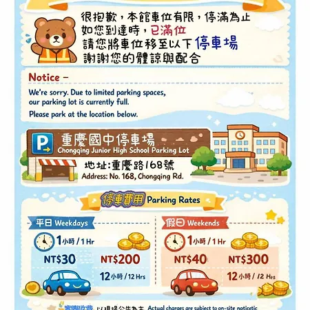 The accommodation is set not far from New Taipei City Fuzhong tube station.